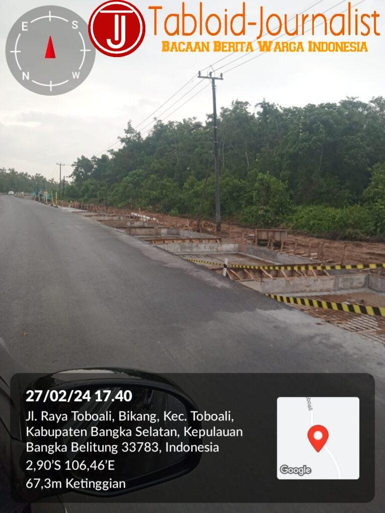 TABLOID – TOBOALI, BANGKA SELATAN, Kondisi lokasi proyek pengerjaan perbaikan jalan nasional di Desa Bikang, Toboali, sangat memprihatinkan dan terindikasi rawan kecelakan bagi para pengguna jalan. Hal ini disebabkan pelaksana kerja proyek itu tidak memasang lampu Penerangan Jalan Umum ( PJU) di titik pengerjaan jalan yang belum rampung.