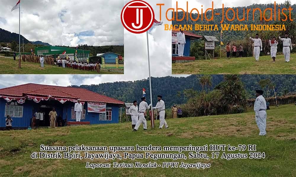 Tabloid Journalist.com –Jayawijaya, Papua Pegunungan – Upacara bendera memperingati Hari Ulang Tahun (HUT) ke-79 Kemerdekaan Republik Indonesia tingkat Distrik Bpiri dilaksanakan di lapangan depan Kantor Distrik (Kecamatan) Bpiri, Kabupaten Jayawijaya, Provinsi Papua Pegunungan, Sabtu, 17 Agustus 2024. Hadir dan bertindak sebagai pembina upacara, Camat Bpiri, Elkius Uaga, S.Sos.